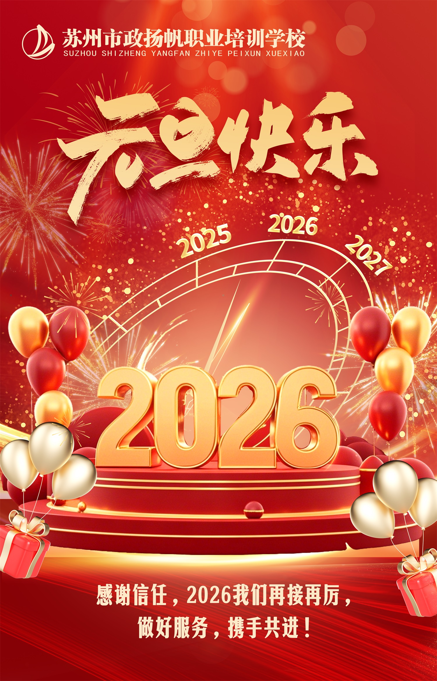 时光荏苒,匆匆一年!在此元旦之际,苏州扬帆教育感谢大家对我们一直以来的信任和支持,2026年我们将一如即往、再接再厉、做好服务,和支持信任我们的伙伴们携手共进!共创辉煌!
